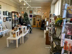 The gates opened last Saturday and the world (well, a large number of people) came to visit us at the Stone School in Portage du Fort! A balmy November 26, sunshine on the poinsettias in our window. Lots of smiles and fun discoveries in terms of original art and unique gifts for family and your tree. Some great conversations with old friends and new. We’ll be open again this weekend and the next Saturday and Sunday, from 11 am, to 4 pm.