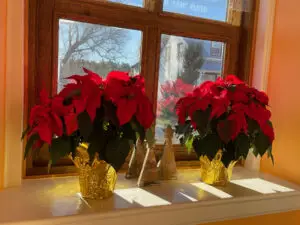 The gates opened last Saturday and the world (well, a large number of people) came to visit us at the Stone School in Portage du Fort! A balmy November 26, sunshine on the poinsettias in our window. Lots of smiles and fun discoveries in terms of original art and unique gifts for family and your tree. Some great conversations with old friends and new. We’ll be open again this weekend and the next Saturday and Sunday, from 11 am, to 4 pm.